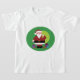 100% cotton so perfect for summer, It is a nicely designed t-shirt, the fabric is soft and the seams finished well, the body of the t shirt has no side seams. I bought a medium size for my two grandsons, aged 9 and 8 it will be slightly big on them but I would rather that than too small