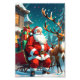 Bring the magic of Christmas into your home with this vibrant and festive Santa Claus illustration. This high-quality photo print features Santa sitting joyfully in his sleigh, surrounded by beautifully wrapped gifts and accompanied by a majestic reindeer. The snowy background and colorful holiday details make it a perfect decoration for the season.