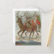A reproduction of a vintage postcard that depicts Santa Claus with his entourage of reindeer leading his sleigh. A wonderful image that brings to mind the Christmas season.
