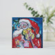 Colourful, whimsical and artistic acrylic painting ,Santa is playing violin in the snowy winter night ,an owl ,floral ornaments,winter plants, holly berries in bright red,green,white,blue,yellow colours.