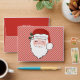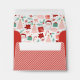 This fun Christmas envelope features a big Santa face on the front with space to write the addresses on his white beard. The back features pink and red stripes with a place to add your return address on the top flap. Inside is a coordinating holiday pattern.