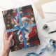 Wrapping paper featuring an up close image of Santa Clause who is smiling and waving, while sitting in front of a Christmas Tree. This design was created by Debbie Quick from Debs Creative Images: www.debscreativeimages.com