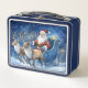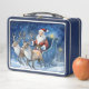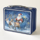 Santa Clause with reindeer sleigh snowy landscape Metal Lunch Box