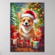 Santa Corgi Christmas Canvas Wall Art Poster