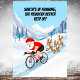 This festive Christmas card showcases Santa Claus speeding down a snowy hill on a candy cane striped bike, with his cheerful reindeer racing close behind. It’s the perfect holiday design for cyclists, bike riders, and anyone who loves a fun and active Christmas season.