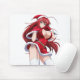Vivid anime style character in a festive Santa outfit with white fur trim, red dress, and thigh-high boots. Bold color contrast and playful pose target anime cosplay and holiday merch lovers