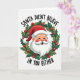 This cool card shows Santa Claus with a mischievous look, smiling with rosy cheeks and twinkling eyes, inside a wreath of green leaves and red berries. The words "SANTA DOESN'T BELIEVE IN YOU EITHER" are in big letters above and below him. The picture is in a circle shape, and Santa’s red hat and white beard stand out against the white background. The leaves and berries look shiny and the colors are bright red and deep green. This card is funny and different, meant for grown-ups who like a good laugh during the holidays. It’s perfect for spreading some festive cheer with a twist! 🎅🏼🎄🎁