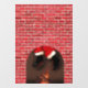 Santa squeezing down a brick chimney.