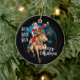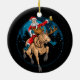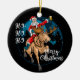 Santa Drinking Beer and Riding a Reindeer Ceramic Ornament