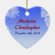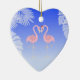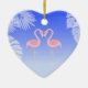 Personalised Christmas Santa Flamingo Beach Wedding Love Christmas Ornaments. Featuring two flamingos one wearing a Santa hat in shades of pink, blue, white and red. Can be personalised with the couples name and date.
