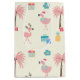 NewParkLane - Tropical Christmas Gift Bag in pastel colours, featuring a fun colourful pattern of pink flamingo's wearing Santa hats, with palm trees, pineapples and presents, against a soft yellow background.