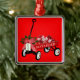 Santa Flyer Toy Wagon with Year or Initials Christmas Ornament. Matching gift tag at https://www.zazzle.com/z/pwtbn?rf=238126934954044669. Design and some graphics by Claudine Boerner with some graphics modified from photos released under CC0 license.