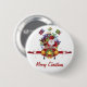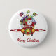 Christmas Santa Claus with Reindeer Flying a Festive Decorated Old Antique Vintage Classic Propeller Aeroplane Delivering Boxes of Gift Wrapped Presents Drawing Illustration Button