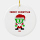 You can admire my Christmas drawing of FrankenCheese dressed up as Santa Claus in this drawing, with Merry Christmas greetings. I call this drawing, "Santa FrankenCheese," added onto this circle ornament, this circle ornament makes the perfect Christmas gift to wish someone a, "Merry Christmas," and a beautiful Christmas decor for your Christmas tree.