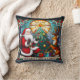 Santa gifts joy to a reindeer by a Christmas tree Cushion
