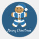 Sticker with a smiling gingerbread Santa, in a blue outfit, and the words “Merry Christmas”. The words can be customised as you like. Merry Christmas!