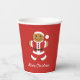 Christmas paper cups with a smiling gingerbread Santa and the words “Merry Christmas” on a red background. The words can be customised as you like. Merry Christmas!