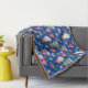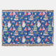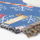 Santa Gnome for Holidays Pattern Blue Background Throw Blanket. Features a blue background pattern with gnomes, presents, holly, candy canes, Christmas trees, and Santa's bag. Personalise this to tile your own image.