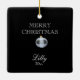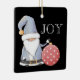 Cute Santa Gnome in Blue with red ornament and JOY type on the front and Name and Year on the back, ceramic ornament.