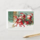 Funny vintage illustration of white bearded gnomes dressed like Santa sweeping snow.