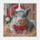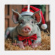 Santa Grey Pig Glass Ornament