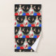 This fun and festive design features Santa and his famous list standing in front of a Christmas tree with a star on top against a black background with white stars.