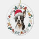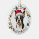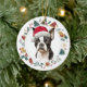 Santa Hat Boston Terrier Dog Christmas Wreath Ceramic Ornament