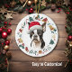 Here's a cute personalised ornament for anyone who loves a little Boston Terrier Dog. The front has a watercolor Boston wearing a Santa hat. The image is framed within a colourful circle wreath made up of various Holiday images, including a snowman, bells, candy cane, stocking, holly, and more! The back of the ornament has the same wreath image with your custom text in green and red.