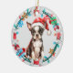 Santa Hat Boston Terrier Puppy Bone Wreath Ceramic Ornament