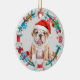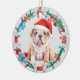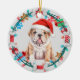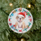Santa Hat Bulldog Puppy Bone Wreath Ceramic Ornament