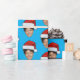 Santa Hat Custom Face Photo Christmas Gift Blue Wrapping Paper