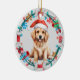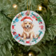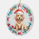 Santa Hat Golden Retriever Puppy Bone Wreath Ceramic Ornament