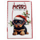Santa Hat Holly Rottweiler Puppy Christmas Medium Gift Bag