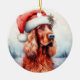 Santa Hat Irish Setter Dog Christmas Ceramic Ornament