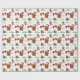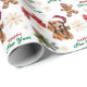 The repeated pattern on this Christmas wrapping paper includes an image of a beautiful Irish Setter dog wearing a red and white Santa Claus hat. Also included in the pattern is a gingerbread man, a red bow, a holly sprig with red berries, and varied sizes of ornate gold snowflakes. Stylized red and green text says MERRY CHRISTMAS" and "HAPPY NEW YEAR". Be sure to see the matching gift tags in our store.