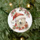 Santa Hat Polar Bear Holly Berries Christmas Ceramic Ornament