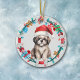 Santa Hat Shih Tzu Puppy Bone Wreath Ceramic Ornament