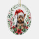 Santa Hat Yorkshire Terrier Poinsettia Wreath Ceramic Ornament