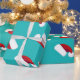 Santa Hats Blue Christmas Holiday Whimsical Wrapping Paper