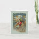 Here comes Santa! He is steering his amazing flying machine through the night sky. Stars, streamers and fancy decorations bedeck the aircraft and its load of wonderful toys for Christmas morning. The restored image of a Victorian postcard features a frosty background, gold accents and beautiful, bright colours. It is framed in icicles and ornaments with a Christmas village in the background.