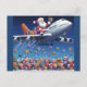 Santa hitching a ride on jumbo jet postcard
