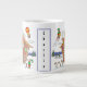 This comic, colourful, and fun Christmas mug features Santa in a gingerbread house window with several elves doing various activities. Rudolph peeks around the house corner. Personalise this adorable mug with your name or your child's name. Original artwork. Copyright Leah Wiedemer.
