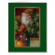 Santa is laden with a bag of toys and lots of Christmas cheer. An adjoining tree is festooned with glimmering beads and glowing candles. Santa wishes everyone a Merry Christmas in golden lettering. The vibrant colours and elaborate detail of this Victorian postcard provide a perfect image for your holiday correspondence and decorative items.