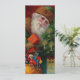 Santa is laden with a bag of toys and lots of Christmas cheer. An adjoining tree is festooned with glimmering beads and glowing candles. Santa wishes everyone a Merry Christmas in golden lettering. The vibrant colours and elaborate detail of this Victorian postcard provide a perfect image for your holiday correspondence and decorative items.