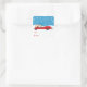 This sticker features a Santa Claus driving a big red convertible in the snow and the text "to" and "from" to be used as a gift tag.