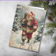 The front of this Holiday greeting card features a wonderful vintage inspired image of Santa Claus trudging through a snowy forest to deliver a package to a remote home. The image is distressed to give it an Old World quality. The inside of the card has several custom text fields, so you may say what you'd like. Unique!