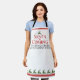 Enjoy a little pop culture holiday humour with this design that features the words “Santa is Coming. He drinks cocoa and he knows things” set in a familiar fantasy typeface. Typography is in Christmas red and black and set above the words is a forest green silhouette of a reindeer. The bottom edge of the apron features a line of forest green reindeer and is decoratively edged with lines in cheerful holiday red.