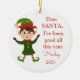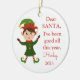 This Santa message ornament features a cute elf design. Personalise it with a name, year and photo on the back.
