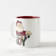 Santa Joy greeting cards, mousepads, mugs, tote bags, holiday T-shirts, and other items featuring Santa Clause with a string of coloured lights and colourful stripes and stars text that reads "Joy".