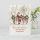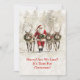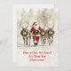 Oh, no! Could Santa be late for Christmas? Just like us, it could happen, or almost happen. Here is a fun Christmas card about Santa Claus rushing to get the reindeer out of the woods and in their holiday gear Christmas Eve. We can relate and be late or almost late to get our cards and presents out on time. Actually, this is a pretty vintage watercolor scene of Santa and his best pals even without the late for Christmas theme. On the back of this flat holiday card is a suggested paragraph of excuses that you may use or replace with your own. Be sure to change the example from names and date to your own.